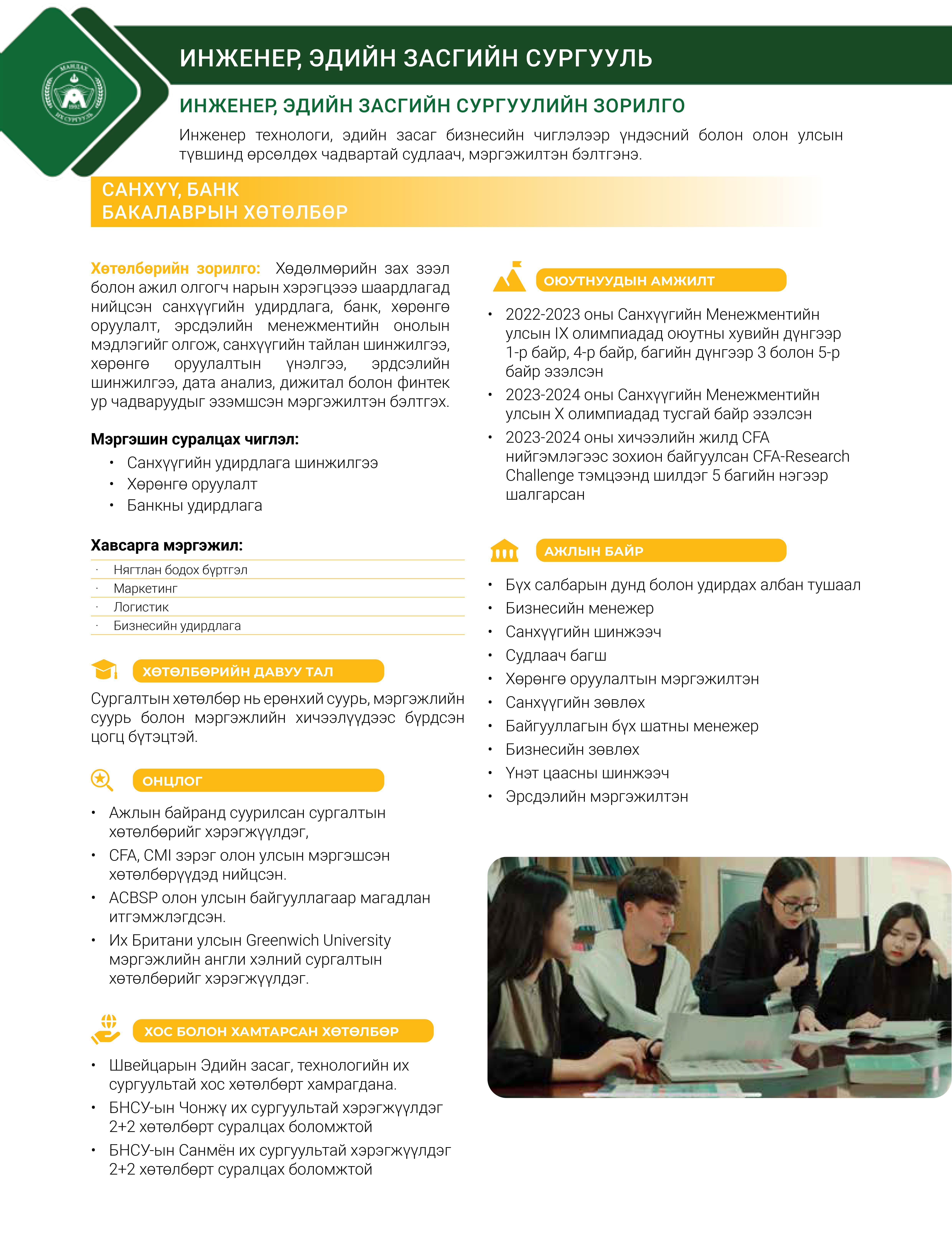 - Бизнесийн удирдлага /Англи хэл дээр явагдах хөтөлбөр/
